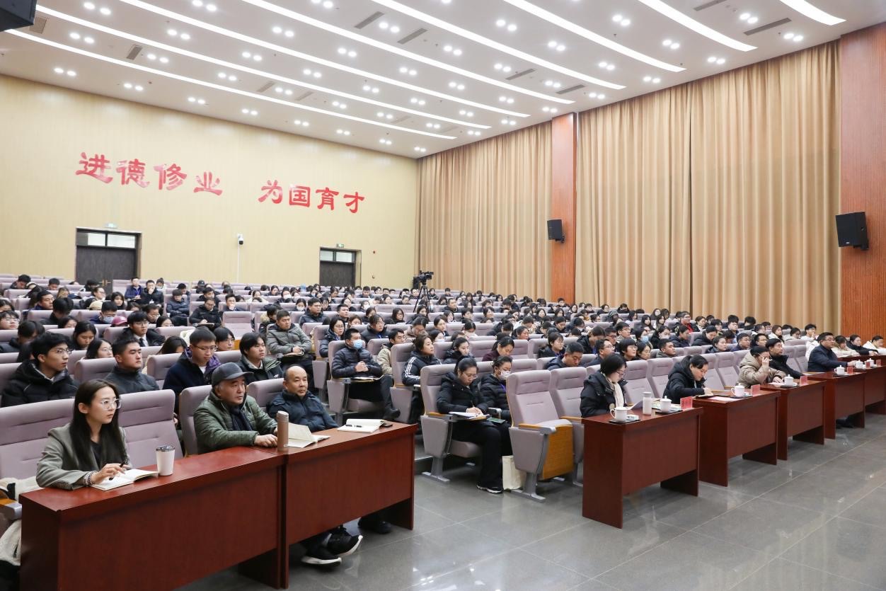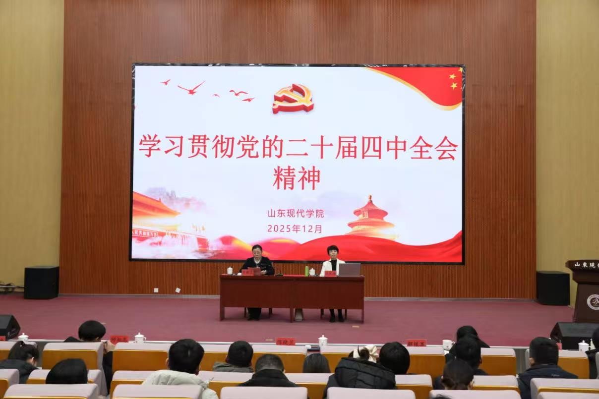 为深入学习贯彻党的二十届四中全会精神,推动全会擘画的改革蓝图在基层落地生根,12月16日,由济南市委宣传部、市委党校联合组建的“进基层”宣讲团走进山东现代学院开展专题宣讲。市委党校经济学教研部副主任孙庆珍以“学习贯彻党的二十届四中全会精神,谱写‘十五五’时期中国式现代化新篇章”为题,带来一场精彩的思想盛宴。宣讲会由学校党委书记陈晓兰主持,党委副书记、副校长帅相志,副校长解银苹,校长助理仲光强,科级以上干部,党建指导员,马克思主义学院全体教师,党员教师代表及学生党员骨干等300余人聆听报告。